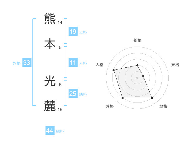 熊本 光麓さんを姓名の画数から五運を鑑定