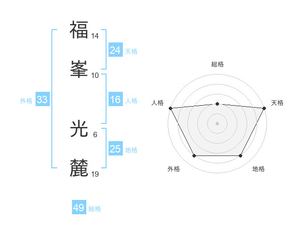 福峯 光麓さんを姓名の画数から五運を鑑定