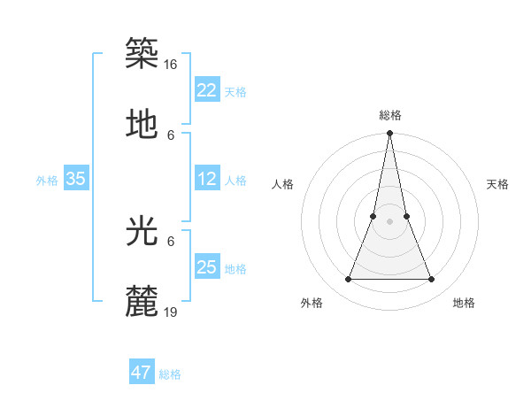 築地 光麓さんの総格は47画の5点!