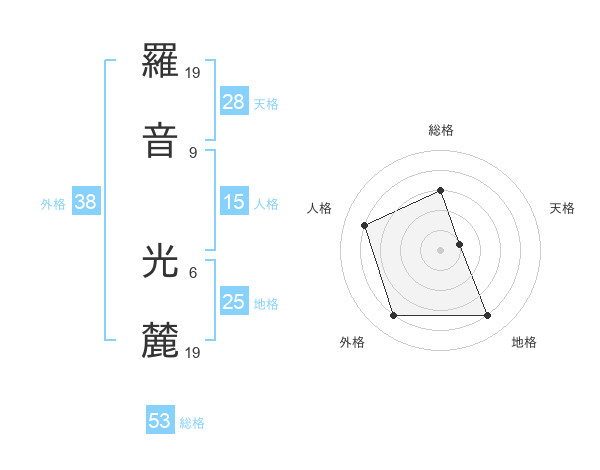 羅音 光麓さんの総格は53画の3点!