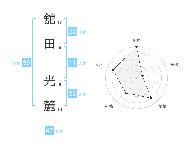 舘田 光麓さんの総格は47画の5点!
