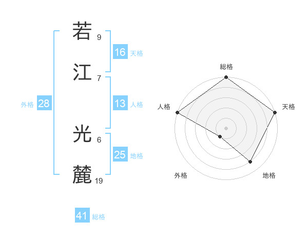 若江 光麓さんの天格は16画の5点!