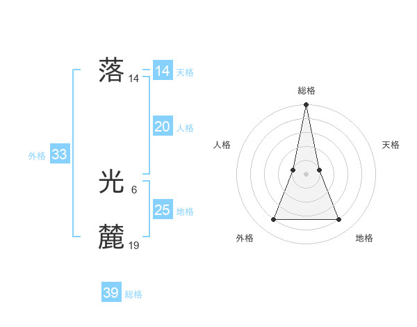 落 光麓さんの総格は39画の5点!