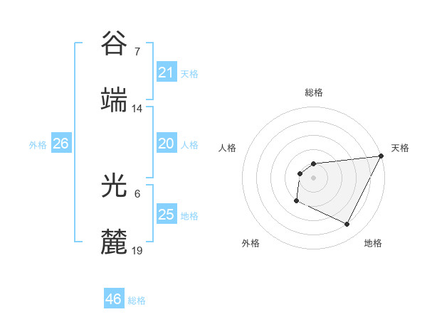 谷端 光麓さんの総格は46画の1点!