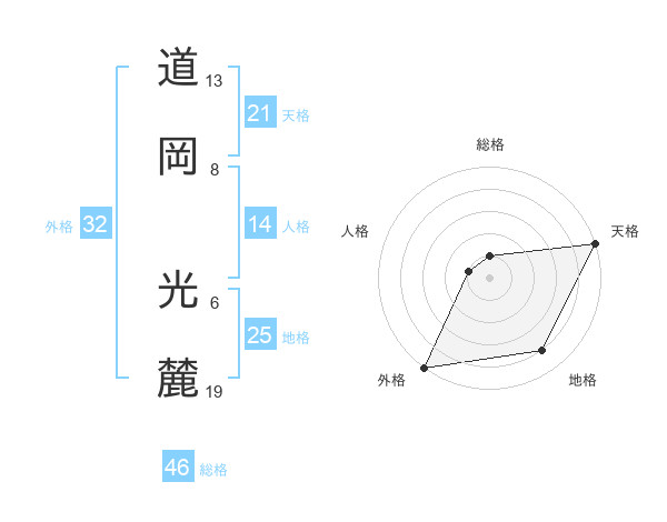 道岡 光麓さんを姓名の画数から五運を鑑定
