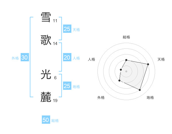 雪歌 光麓さんを姓名の画数から五運を鑑定