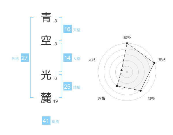 青空 光麓さんの天格は16画の5点!