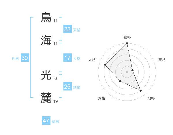 鳥海 光麓さんを姓名の画数から五運を鑑定