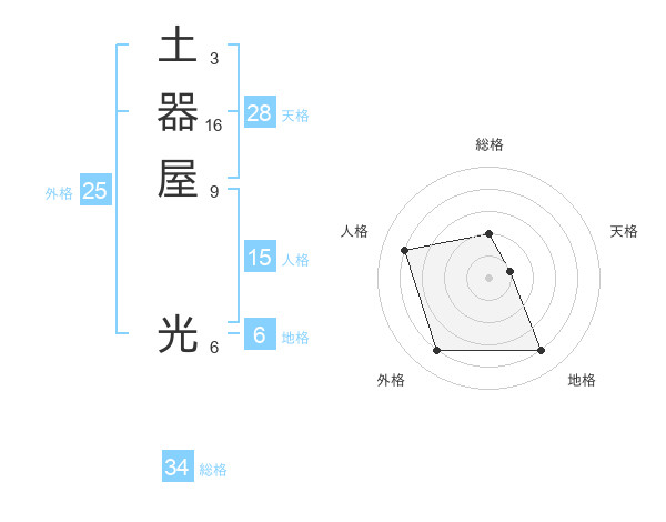 家系が持つ宿命的な運勢を表します。祖先から受け継いだ苗字ですので自分の力が及びません。家柄を象徴します。