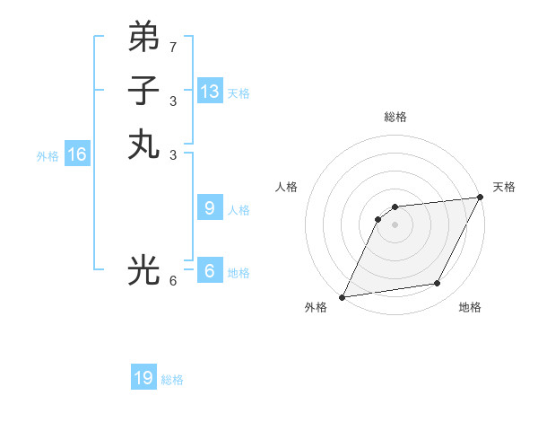 弟子丸 光さんの天格は13画の5点!
