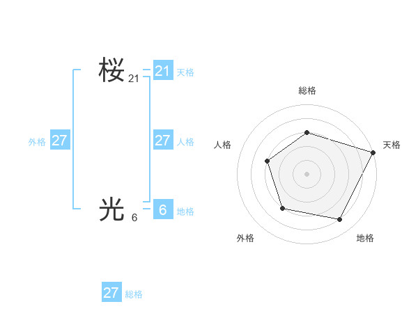 桜 光さんの総格は27画の3点!