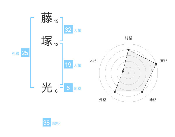 藤塚 光さんの総格は38画の4点!