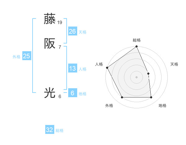 藤阪 光さんの総格は32画の5点!