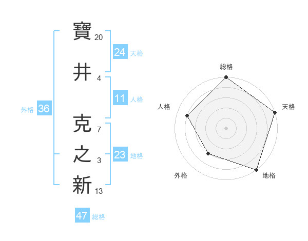 寶井 克之新さんを姓名の画数から五運を鑑定