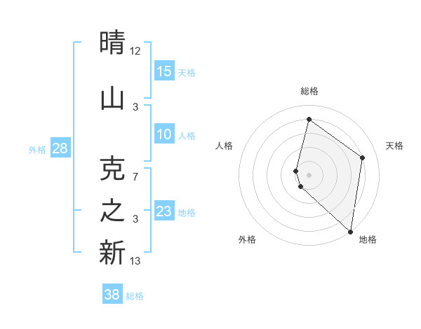 晴山 克之新さんの総格は38画の4点!