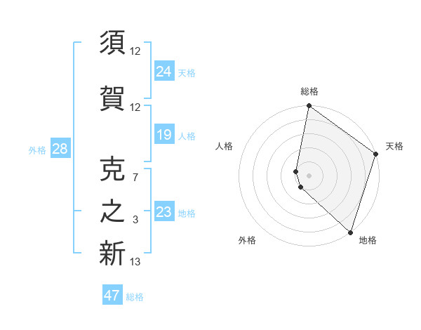 須賀 克之新さんを姓名の画数から五運を鑑定