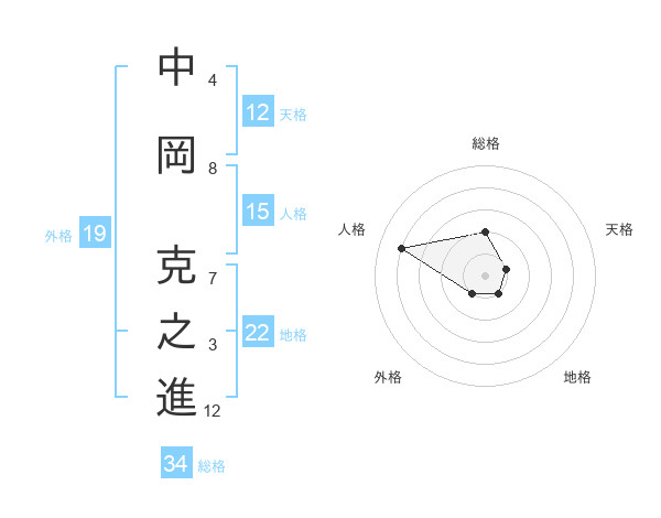 中岡 克之進さんの総格は34画の2点!