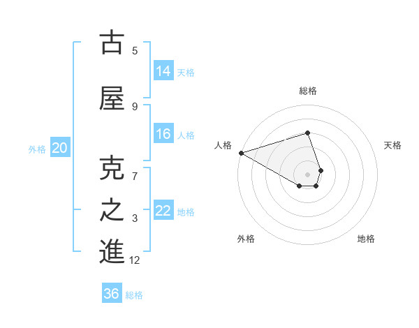 古屋 克之進さんを姓名の画数から五運を鑑定