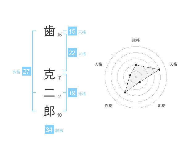 歯 克二郎さんの人格は22画の1点!