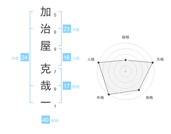 加治屋 克哉一さんの外格は24画の5点!