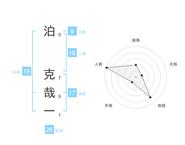 泊 克哉一さんを姓名の画数から五運を鑑定
