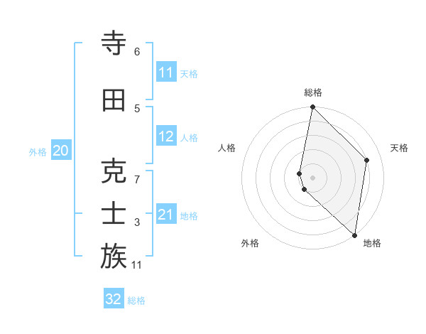 寺田 克士族さんを姓名の画数から五運を鑑定