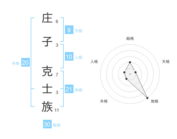 庄子 克士族さんの地格は21画の5点!