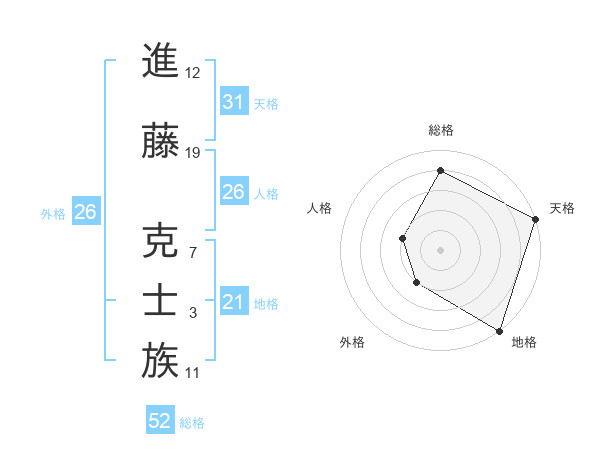 進藤 克士族さんの総格は52画の4点!
