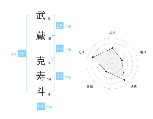 武蔵 克寿斗さんを姓名の画数から五運を鑑定