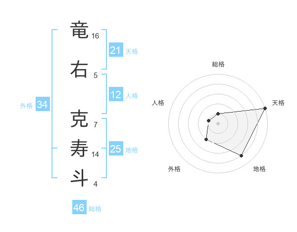 竜右 克寿斗さんを姓名の画数から五運を鑑定