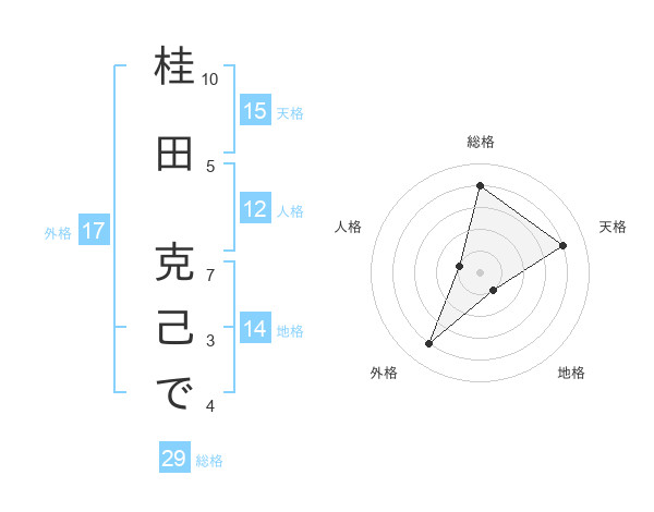 桂田 克己でさんを姓名の画数から五運を鑑定