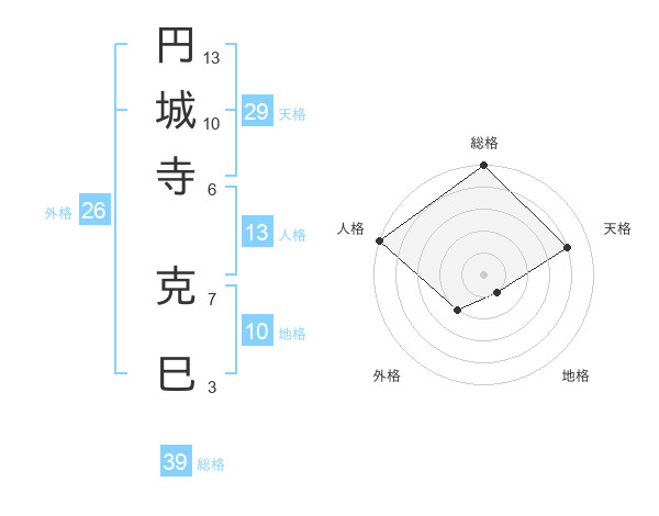 円城寺 克巳さんの総格は39画の5点!