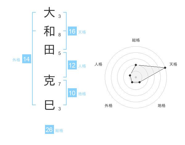 大和田 克巳さんの総格は26画の2点!