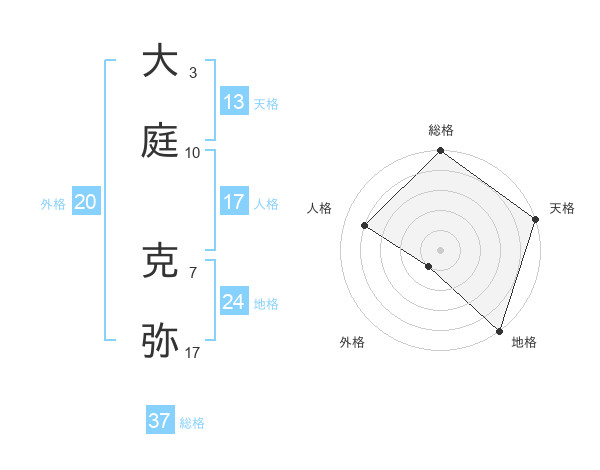 大庭 克弥さんの総格は37画の5点!