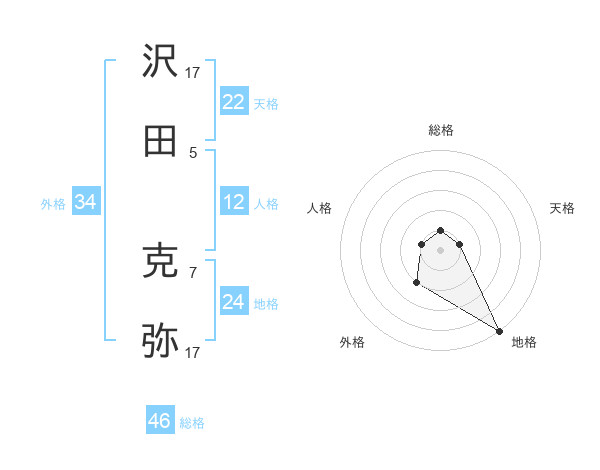沢田 克弥さんを姓名の画数から五運を鑑定
