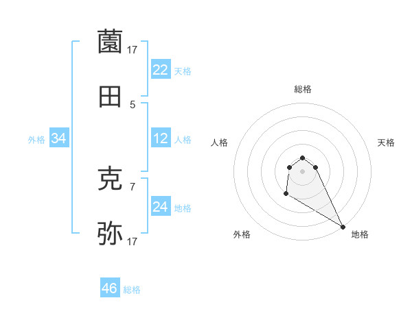 薗田 克弥さんを姓名の画数から五運を鑑定