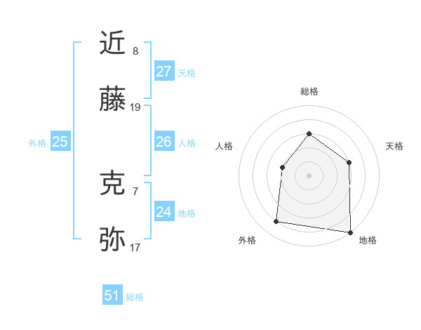 近藤 克弥さんの総格は51画の3点