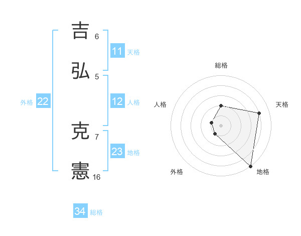 吉弘 克憲さんの総格は34画の2点!