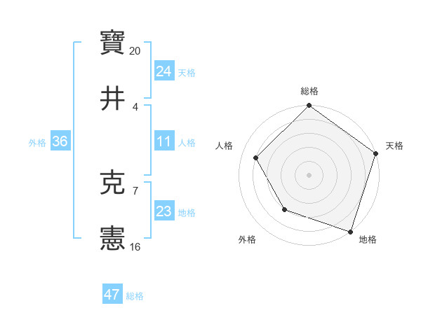 寶井 克憲さんの総格は47画の5点!