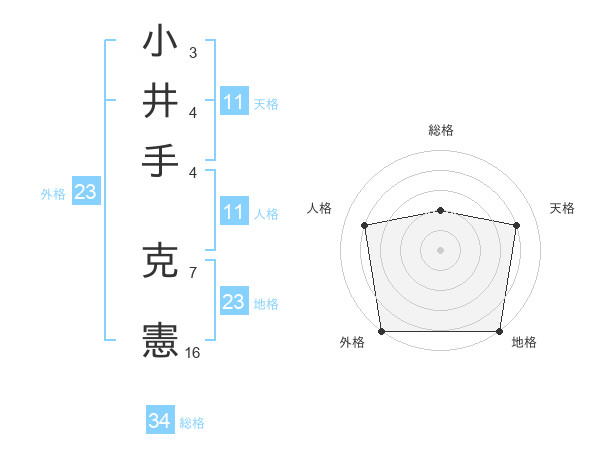 小井手 克憲さんを姓名の画数から五運を鑑定