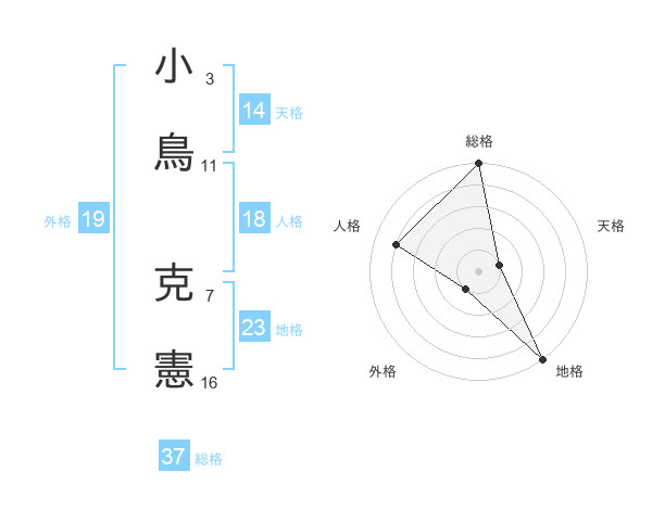 小鳥 克憲さんの総格は37画の5点!