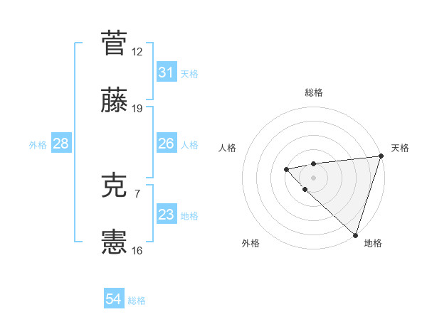 菅藤 克憲さんを姓名の画数から五運を鑑定