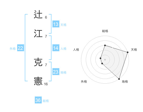 辻江 克憲さんの天格は13画の5点!