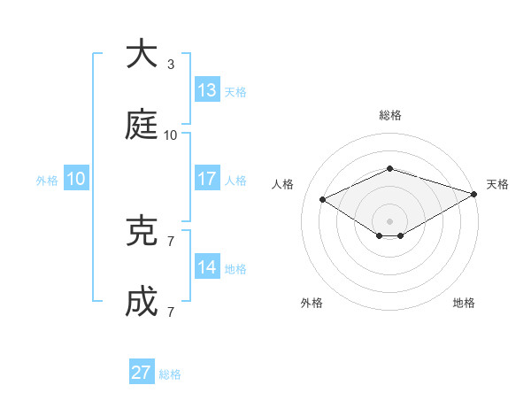 大庭 克成さんの天格は13画の5点!