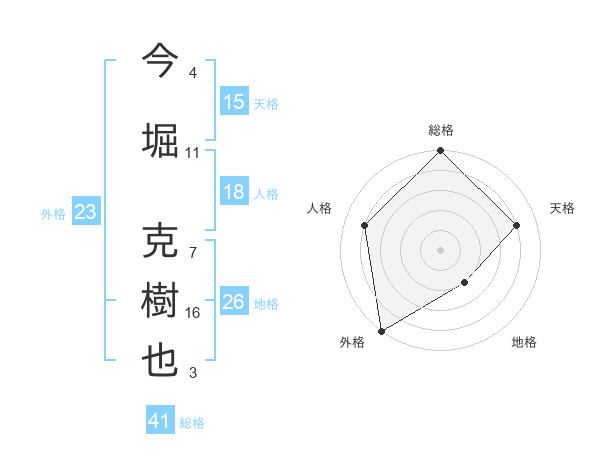 今堀 克樹也さんを姓名の画数から五運を鑑定