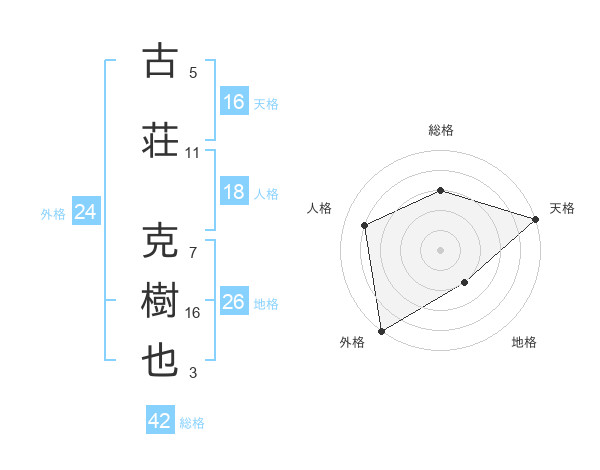 古荘 克樹也さんを姓名の画数から五運を鑑定