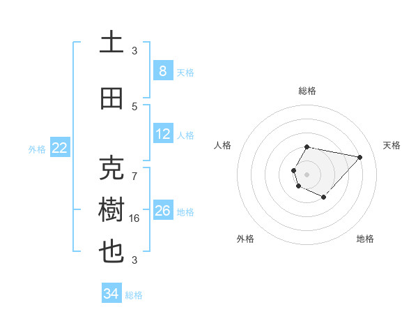 土田 克樹也さんを姓名の画数から五運を鑑定