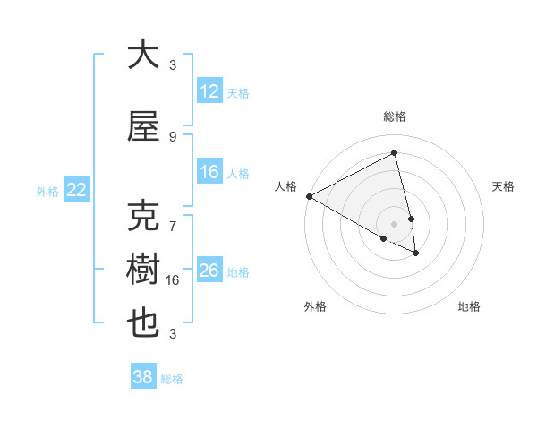 大屋 克樹也さんの総格は38画の4点!