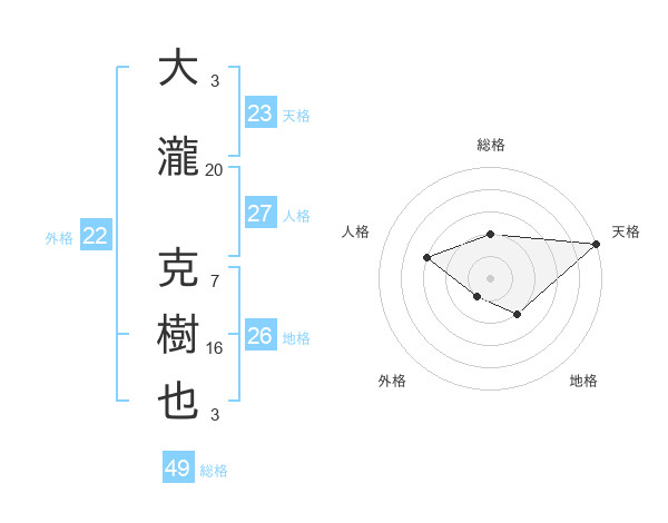 大瀧 克樹也さんを姓名の画数から五運を鑑定