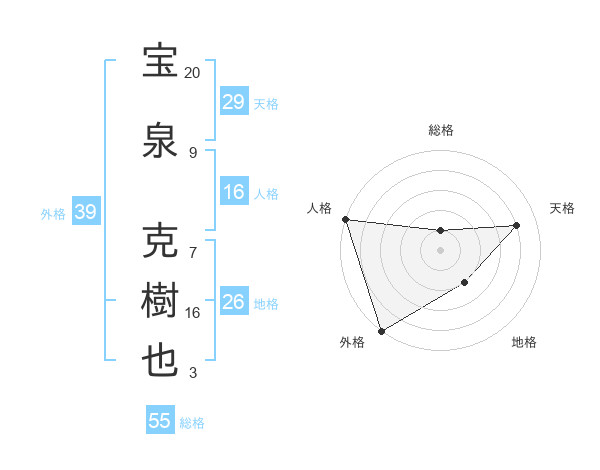 宝泉 克樹也さんを姓名の画数から五運を鑑定